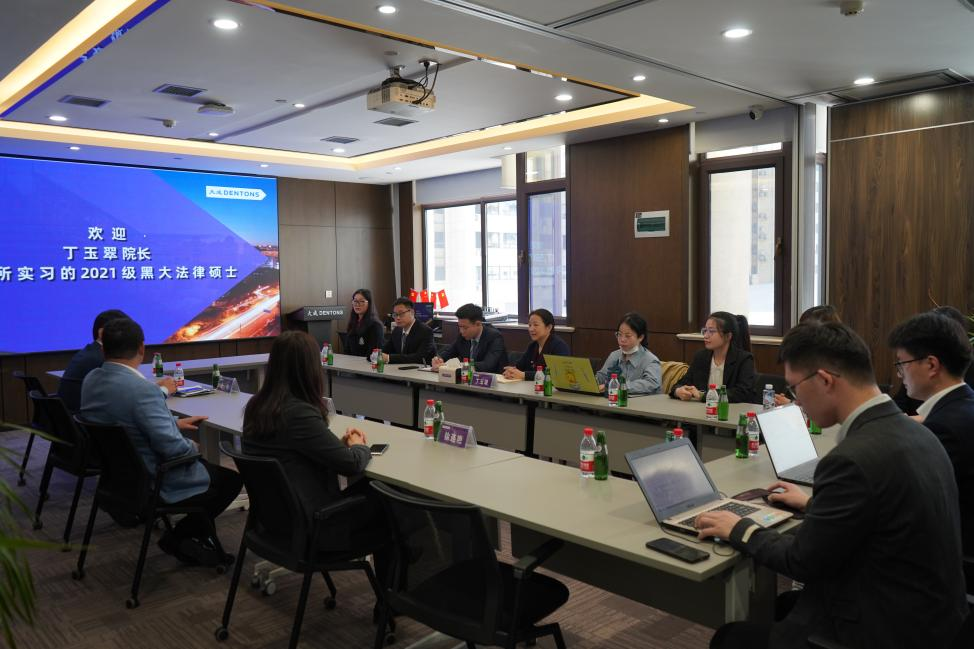 教学实践基地”之一的北京市大成(哈尔滨)律师事务所举行座谈会议。大成哈尔滨事务所党委书记、主任郑国强,管委会主任于奇及综合行政部主管徐连艳参与座谈。