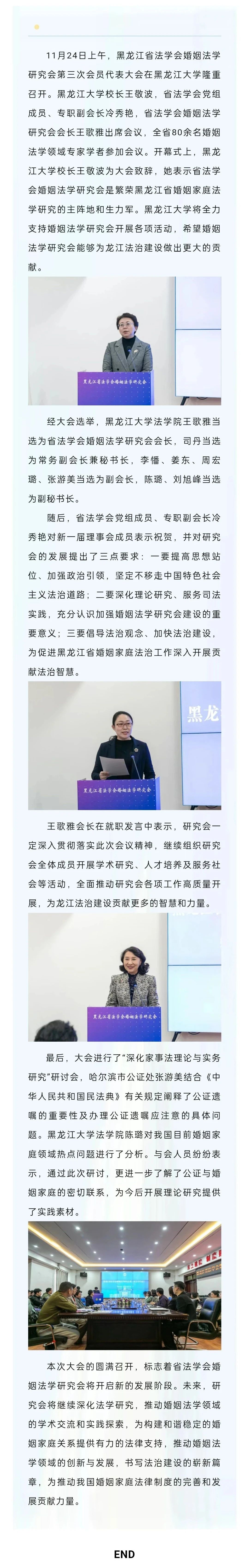黑龙江省法学会婚姻法学研究会第三届理事会换届大会圆满举行