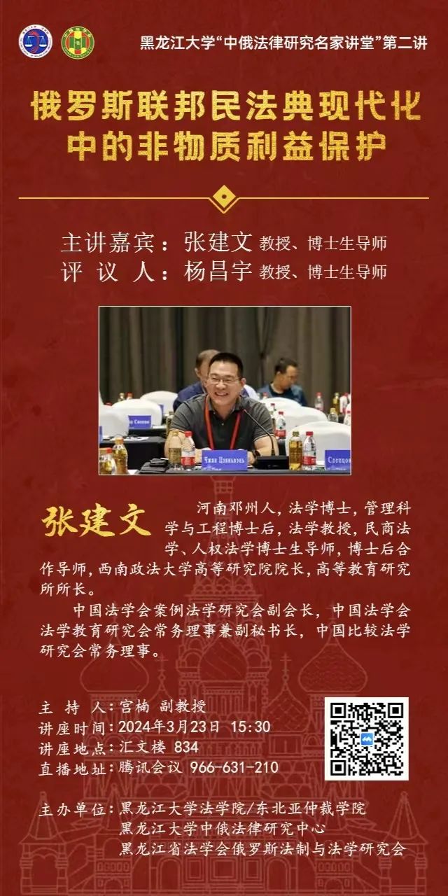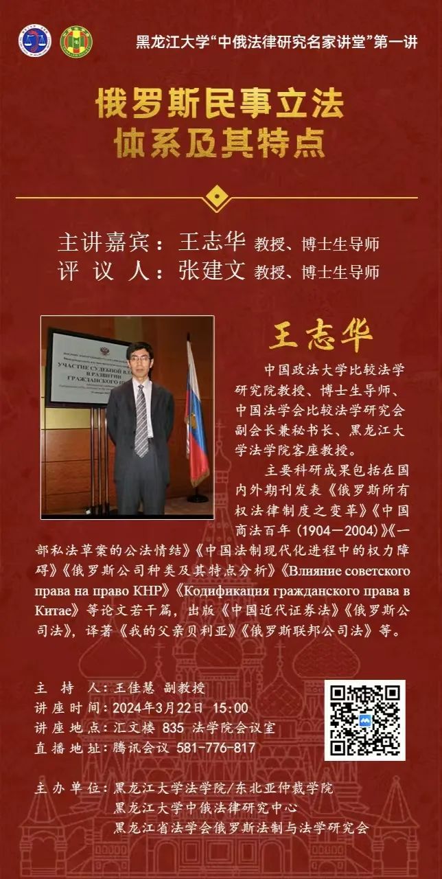 亚洲色情 “中俄法律研究名家讲堂”系列讲座预告