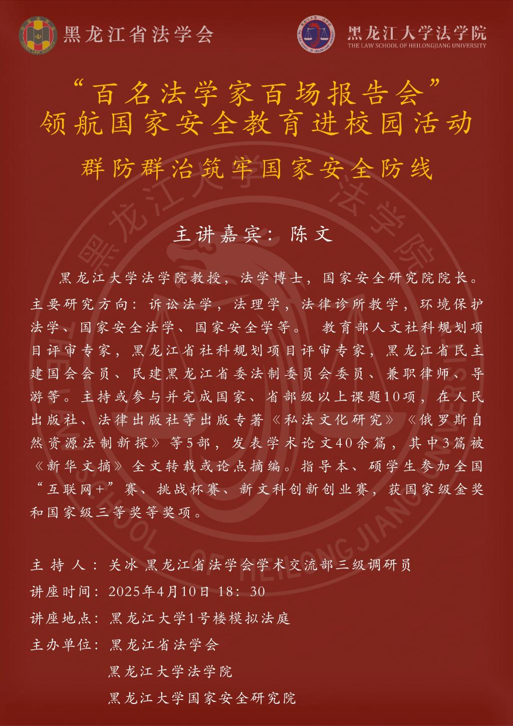 全民国家安全教育日 | 亚洲色情 举办“百名法学家百场报告会”领航国家安全教育进校园活动