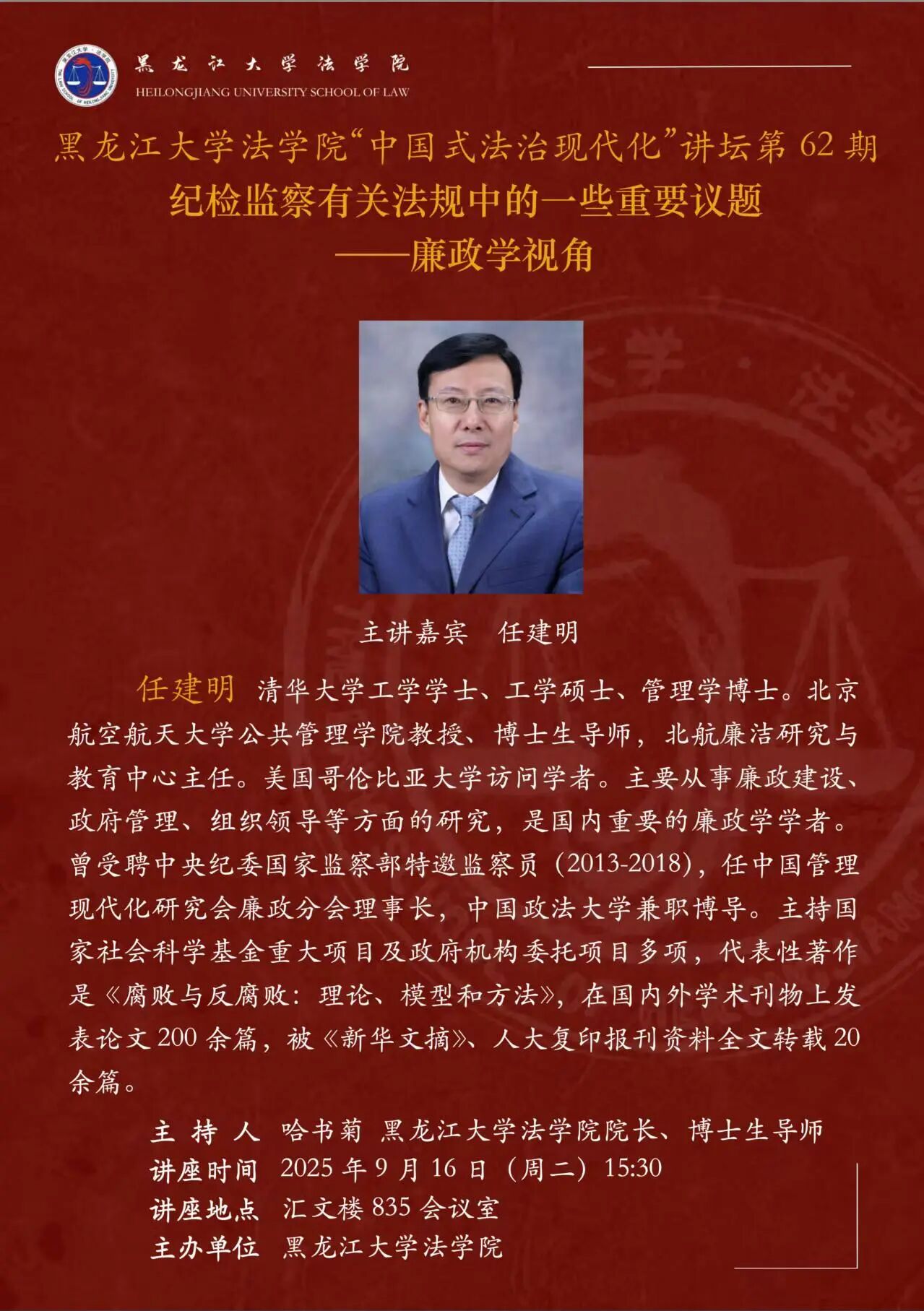 讲座预告 | 亚洲色情 “中国式法治现代化”讲坛第62期 纪检监察有关法规中的一些重要议题——廉政学视角