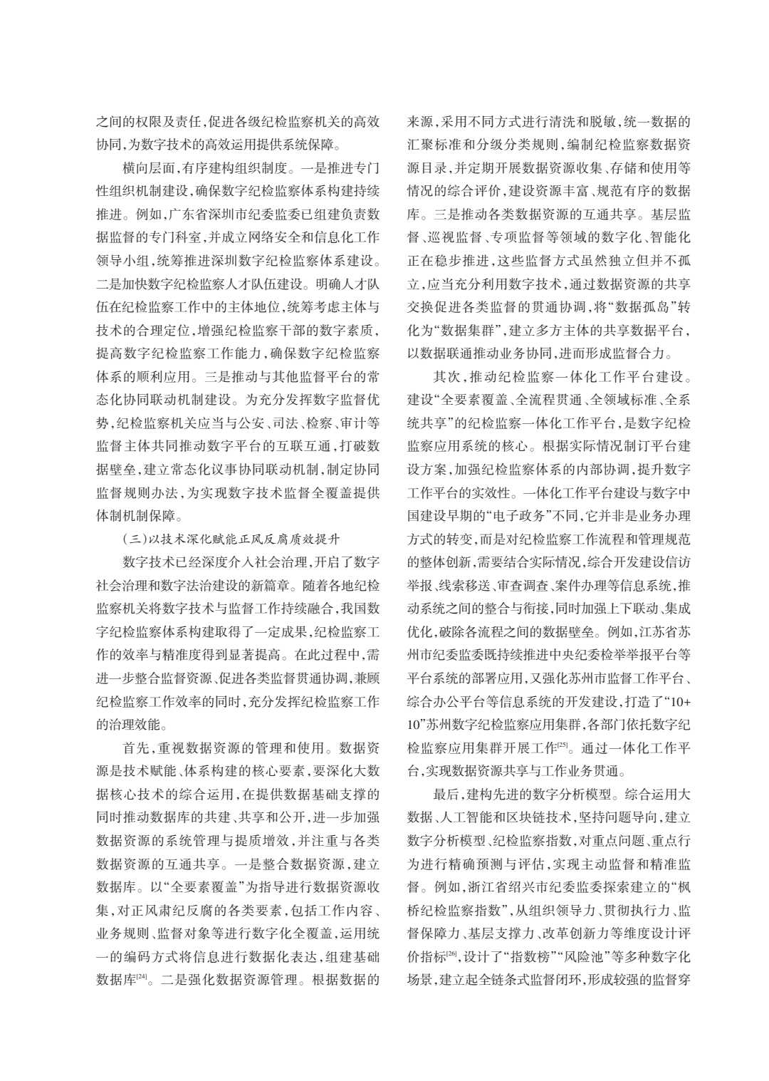 数字纪检监察是数字技术与纪检监察工作的深度融合,是贯通全流程、全要素的新型监督模式。文章创新性地提出以战略思维、系统思维、底线思维指引体系建设,强调实现价值理性与技术理性的同构。在构建路径上,主张建立“纵横结合”的组织体系,通过纪检监察一体化工作平台建设,破解“数据孤岛”问题。文中还特别关注了“算法黑箱”、数据安全等风险防范,提出以法治引领实现“数字善治”。该文通过对四川省成都市金牛区、浙江省绍兴市等地方实践的分析,为构建数字纪检监察体系提供了兼具理论深度与实践价值的参考,对推进纪检监察体制改革具有重要意义。