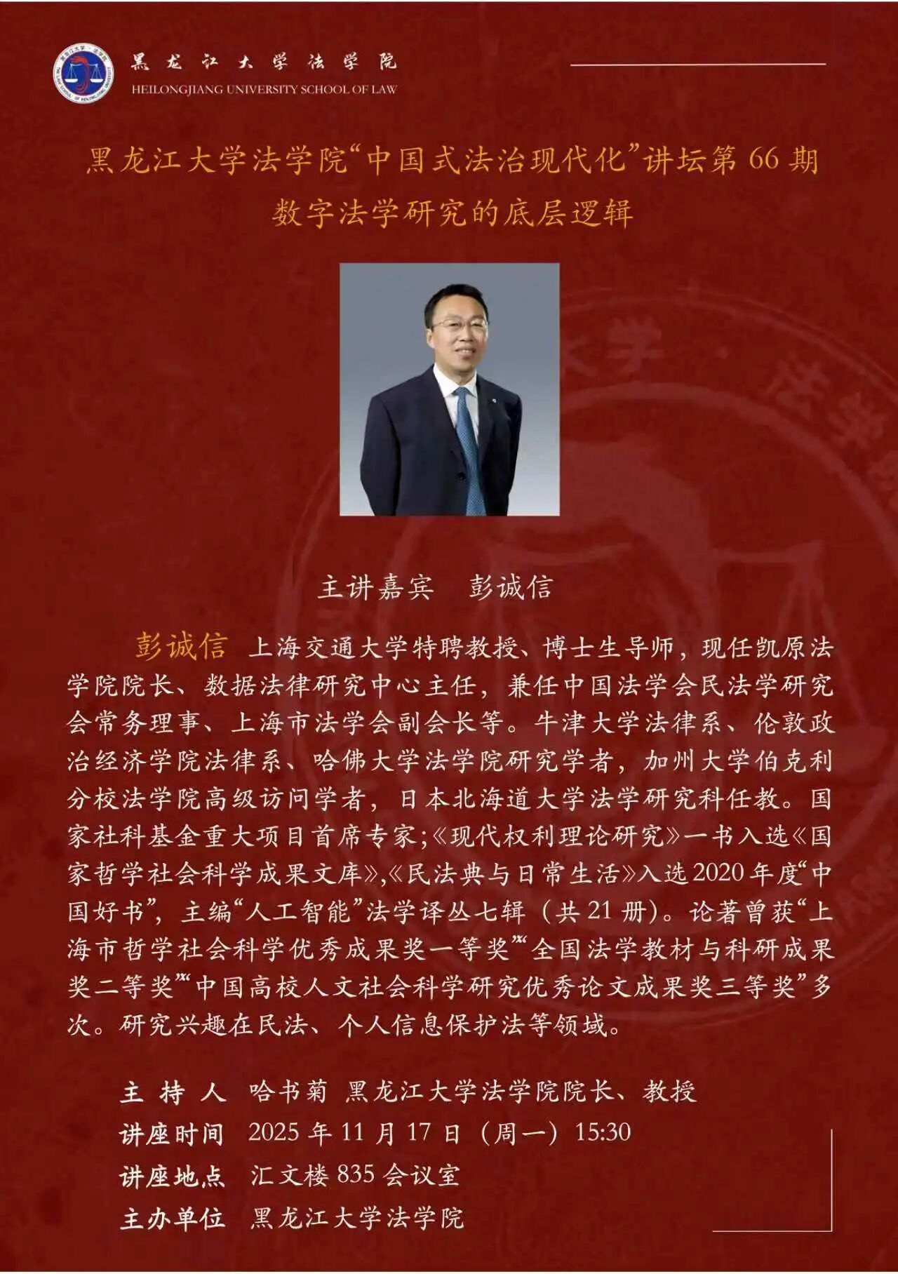 讲座预告 | 亚洲色情 “中国式法治现代化”讲坛第66期 数字法学研究的底层逻辑