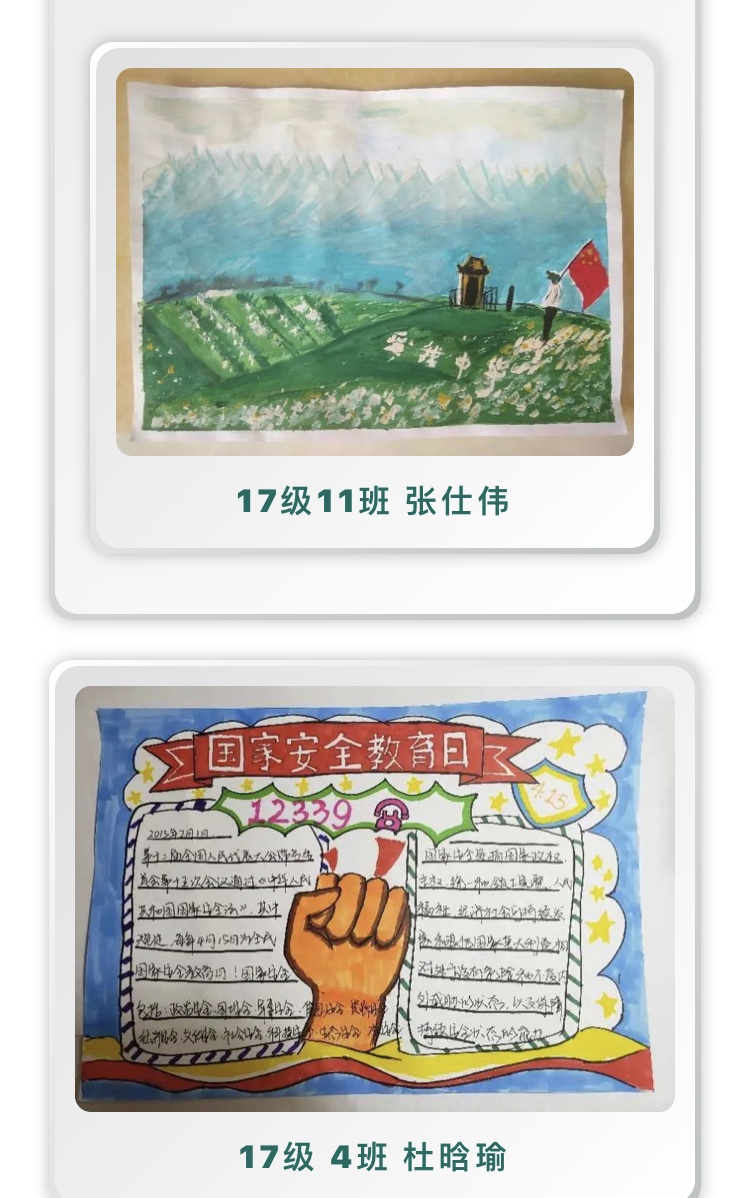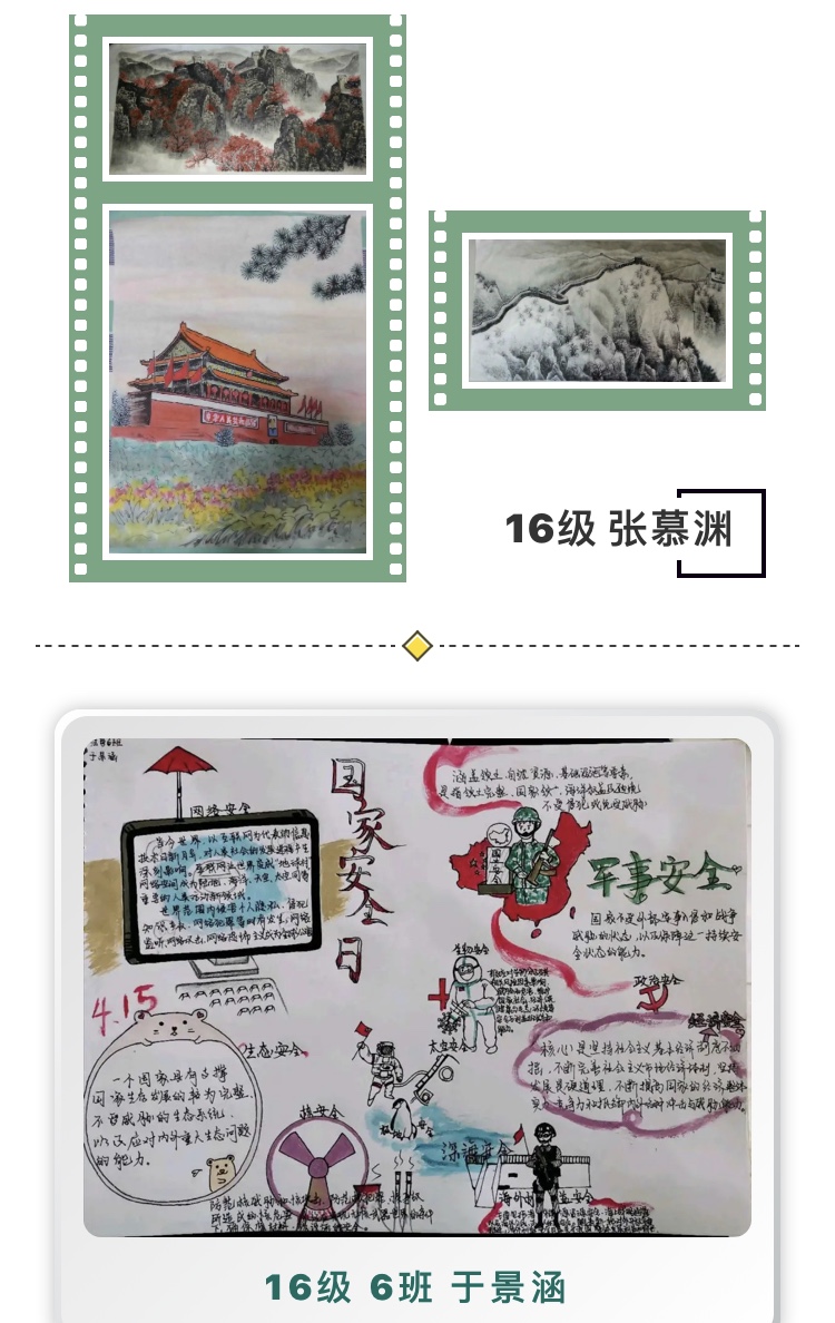 还开展了主题书法、绘画、手抄报等创作作品的征集活动,进一步凝练了同学们对国家安全观的所思所想。上述活动均评选出优秀作品,通过平台推送展示。