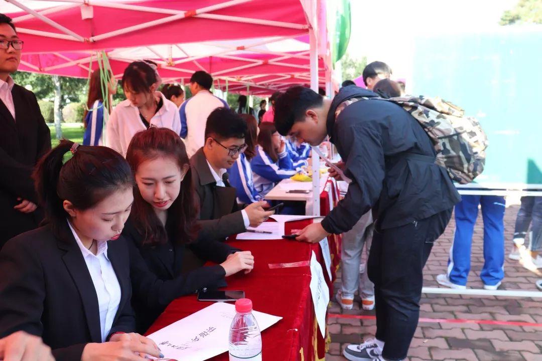 学生会迎新工作人员于主楼广场设立迎新报道处,通过设置报道注册、绿色通道、发放新生材料袋、新生引导等环节,为新生入学手续办理提供了高效便捷的一条龙服务。