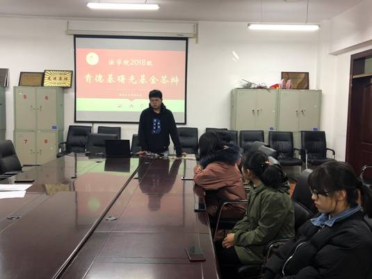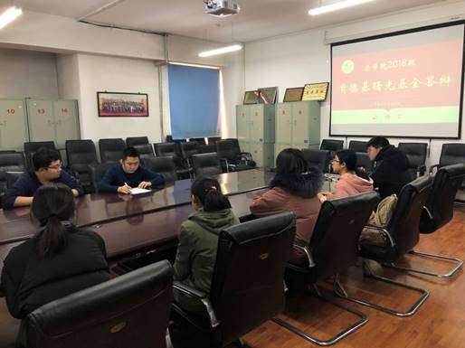 会议伊始,王业超老师结合《关于做好中国肯德基曙光基金2018-2019学年新生资助工作的通知》向同学们简要介绍了肯德基曙光基金的评选条件、资助方式、推荐程序以及社会实践等细则。