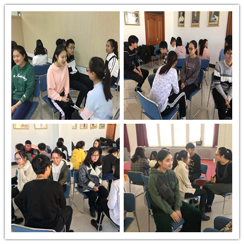 本次活动以“大风吹”作为暖场游戏拉开序幕,通过“聆听口令,交换座位”的方式使同学们对他人特点形成简要了解,打破了同学们最初的羞涩与腼腆,并为后续环节的进行奠定了基础。“超级访问”环节中,同学们将座位打乱成为三个互分内外的“同心圆”。游戏过程由内外两人依次序提问介绍,互相进行人物访谈。通过这种“无差别随机访问”活动,班级成员间增强了彼此了解,增进了彼此感情。“无声排队”培养了同学们之间的默契程度;“心有千千结”使同学们深刻感受到了团结一致的重要性。活动气氛轻松融洽,同学反响良好。