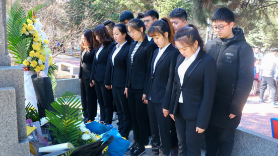 青年志愿者协会主席团的带领下,同学们以最诚挚尊敬的感情进行了扫墓。