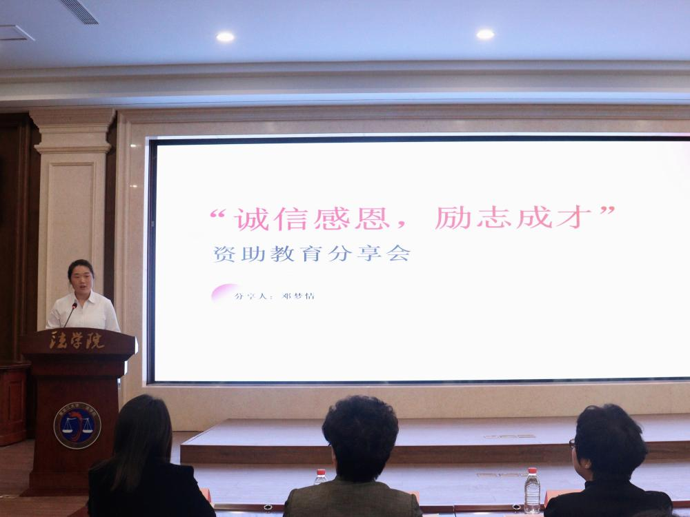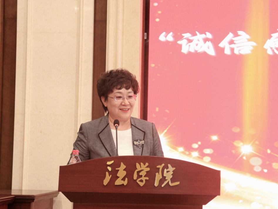 向捐助企业表示感谢,向受助学生表示祝贺。她指出,教育是一项神圣的事业,而助学更是一种温暖的善举。鸿俊祥助学金的设立,不仅为学院的学生提供了经济上的支持,更是对学生精神层面的激励鼓舞,体现了企业对教育事业的关注和对青年学子成长的关爱。她希望,同学们能够立鸿鹄之志、练就过硬本领,心怀感恩,勇于担当,用自己的实际行动去回报社会、报效祖国。
