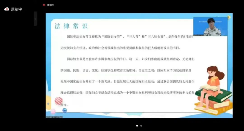 首先从《中华人民共和国妇女权益保障法》讲解入手,通过人身权利、劳动和社会保障权益、婚姻家庭权益等方面详细讲述了妇女如何更好地保护好自己的权益。深入贯彻党的二十大精神,高举中国特色社会主义伟大旗帜,进一步宣传男女平等,建设先进性别文化,大力宣传学校涌现出的先进女职工个人,积极开展主题鲜明、内容丰富、形式多样的纪念活动,激励女职工立足岗位、争奉献、建功业、求进步、谋发展,为推进和谐稳定发展做出新的贡献。