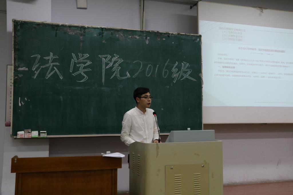 学生管理规定》,具体包括相关管理制度与规定及校规校纪、寝室卫生安全教育等方面内容,规范学生学习生活,严肃学校纪律,严禁学生私自外租房。国庆假期临近,会议中邵老师对2016级全体学生着重强调防范电信诈骗与非法传销以及十一假期注意人身及财产安全。