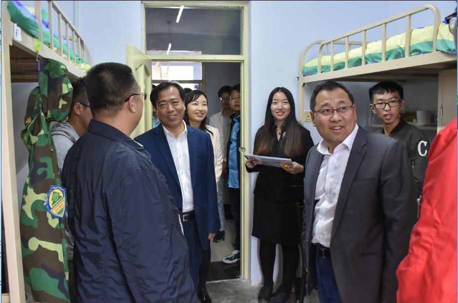 院长董玉庭教授、党委书记胡东教授、党委副书记、副院长魏双老师,2017级辅导员杨译迪老师以及院团委王业超老师、邵俊峰老师,常明阳老师一同走访新生公寓。