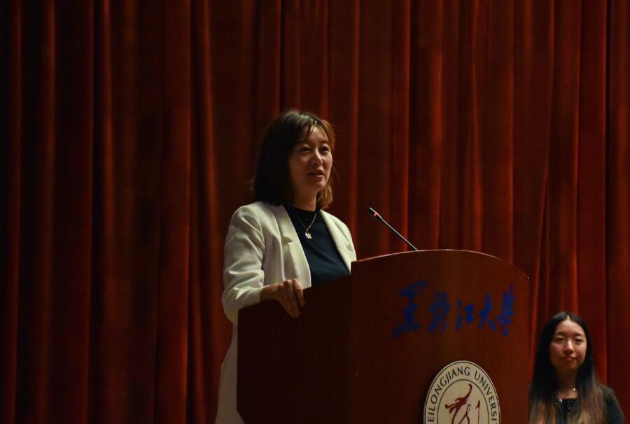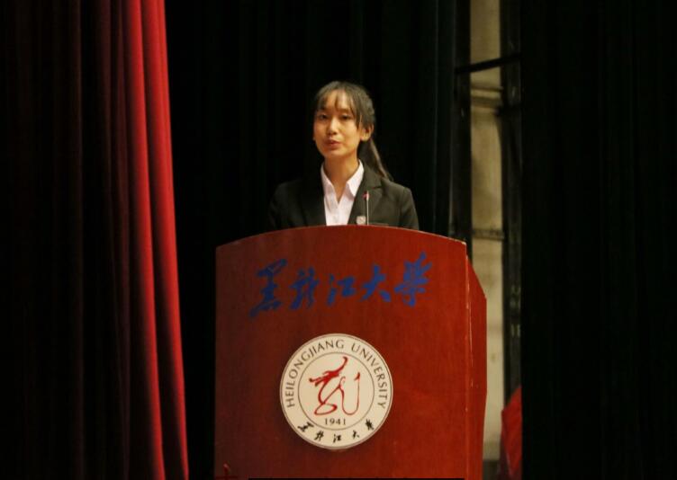 院教师代表潘丹丹副教授表达了对新生们的祝贺并提出了真诚的建议,并期望同学门在四年过后都能成为有节、有为、有品的年轻人、法律人。