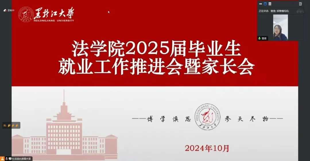 董捷表示,学院始终高度重视毕业生就业工作,家校联动作用有效发挥,并向毕业生家长长期以来对学院工作的理解与支持表示感谢。她结合近年就业数据对目前考研、考公和就业的形势进行客观分析,建议同学们抢抓就业黄金期,争做就业先行者。她指出,在接下来的就业关键时期,希望家长能够充分了解就业形势,帮助同学们合理规划,学院将竭诚做好就业指导和帮扶,搭建更多就业平台,切实发挥家校育人合力,为学生更好更高质量的就业倾尽全力。