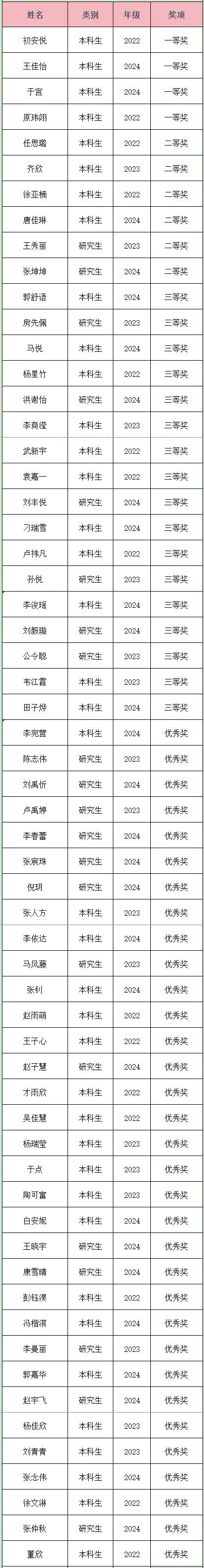 获奖名单