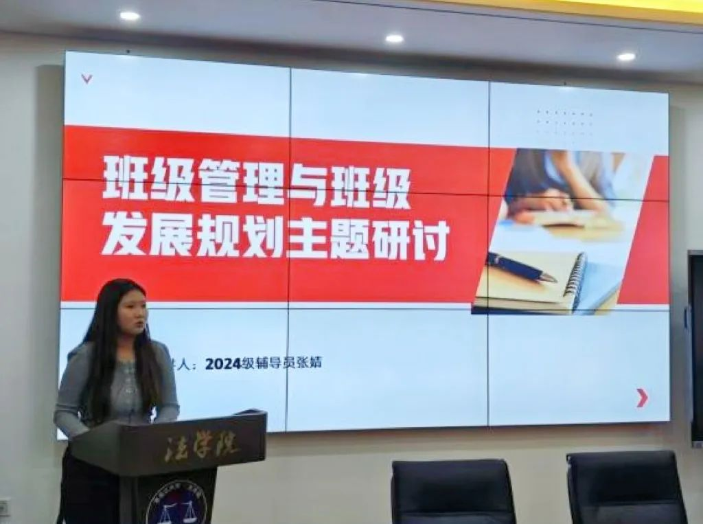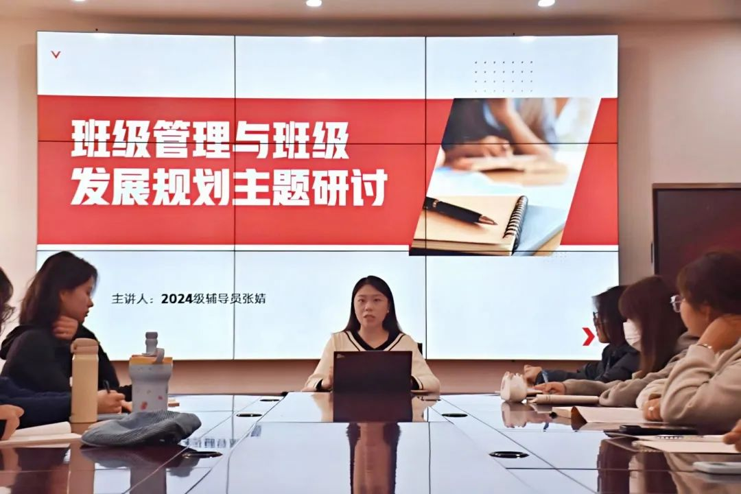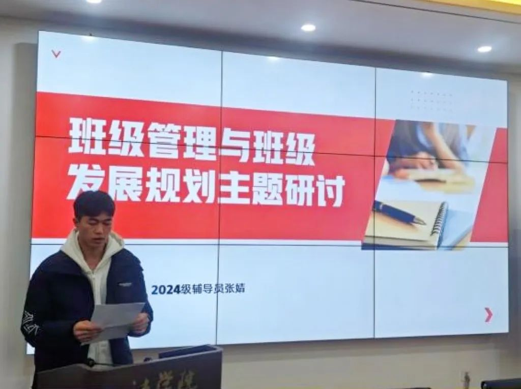 新生辅导员张婧老师对本次研讨的重要性和目的进行了阐述,强调班级干部在班级管理中的关键作用,鼓励大家围绕班级建设、管理制度与发展规划等方面积极参与讨论,为班级的发展出谋划策。