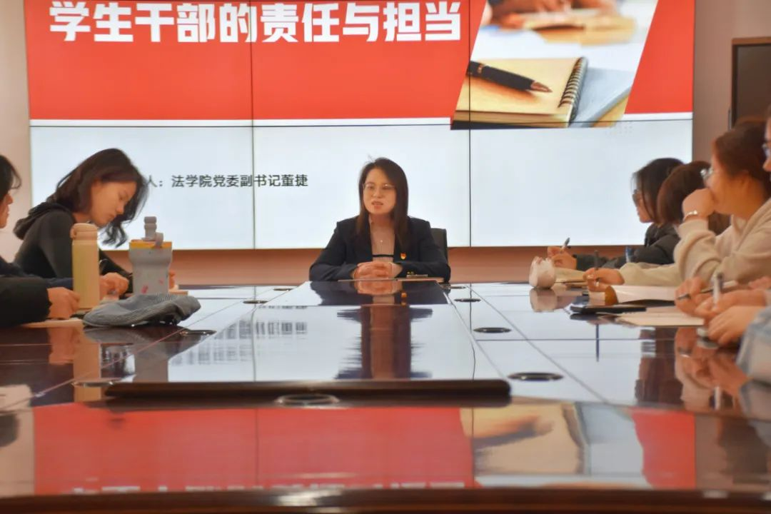 学院党委副书记董捷以《学生干部的责任与担当》为题进行专题授课,要求全体学生干部要明确学生干部的角色定位。学生干部是连接师生之间的桥梁,是学校政策的执行者和传播者,同时也是同学们的代言人。不仅要协助老师管理班级事务,还要关注同学们的需求和困难,积极为他们提供帮助和支持。
