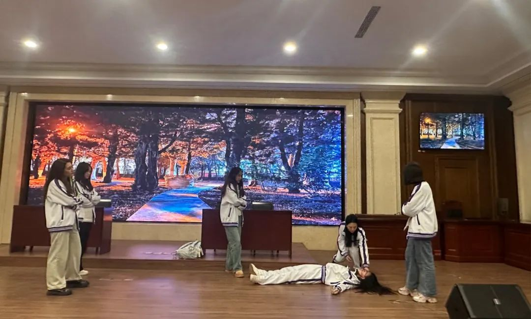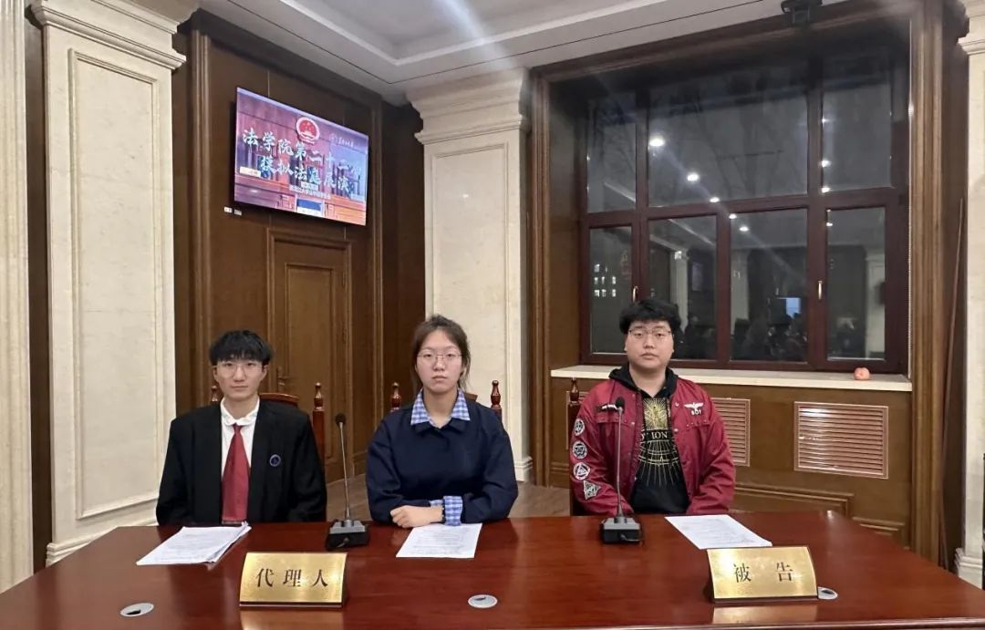 随后,8名学生分别扮演了审判长、审判员、书记员、公诉人、原告、被告等角色,围绕本起案件展开现场庭审。整个庭审过程严谨、规范流畅,参演的同学们怀揣着对法律的敬畏,履行自己的“法律职责”,他们严格按照真实的庭审程序,顺利地演绎了法庭调查、法庭辩论、最后陈诉和判决阶段等庭审全过程,最大程度的还原庭审的真实情况。同时也给观看展演的同学们上了一场生动的法治课。