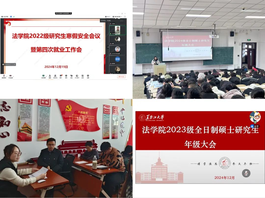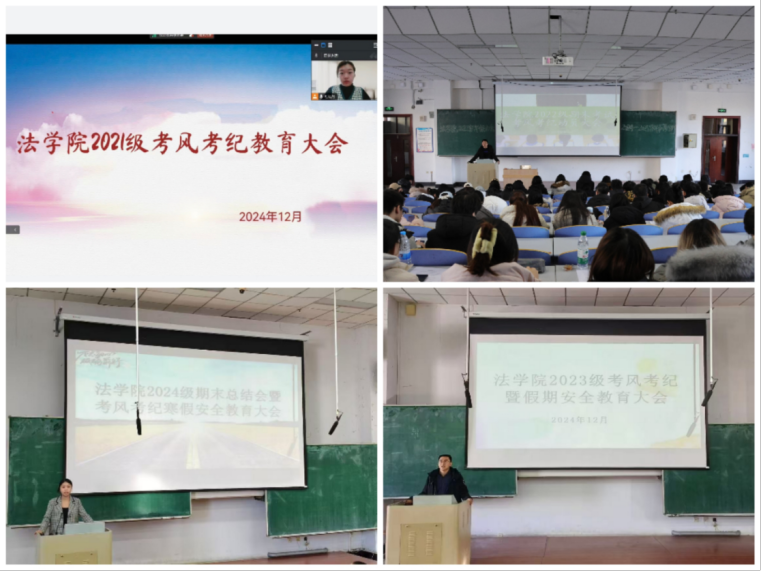 各年级于12月中旬召开期末年级大会暨考风考纪假期安全教育大会。会议由各年级辅导员主持,本科生、研究生全体同学参加会议。