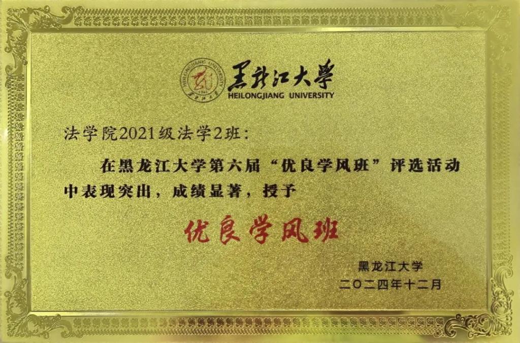 截至目前,班级成员0挂科、0预警、0降级、0违纪,2023-2024学年平均学分绩点为9.07,位居年级前列,大学英语四级通过率96.67%,六级通过率76.67%,班级推免率50%,法律职业资格证通过率10%。在班级学风建设上,同学们团结一致,累计荣获校级及以上奖励67项、发表学术论文3篇。班级成立以来,全体同学齐心协力、踔厉奋发,共同凝聚了一个积极向上、奋勇争先的优秀集体。