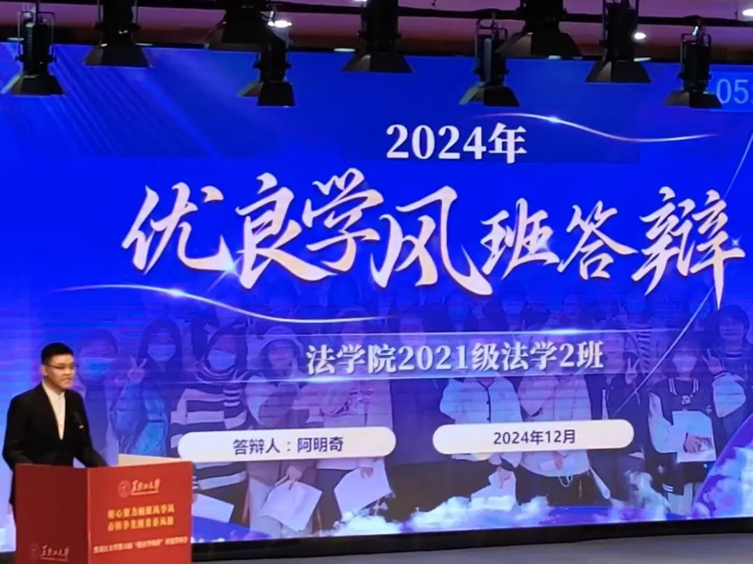 截至目前,班级成员2023-2024学年平均学分绩点为8.50,大学英语四级通过率96.67%,六级通过率43.33%,班级推免率25%,法律职业资格证通过率16.67%。在班风建设的画卷上,同学们团结一心,着力丰富“第二课堂”,积极参与校、院两级活动,累计荣获校级及以上奖励44项、发表学术论文2篇。2021级法学2班始终秉持着“以学促优,奋楫争先”的集体目标,在各个领域发挥才华与优势,不断追求卓越。