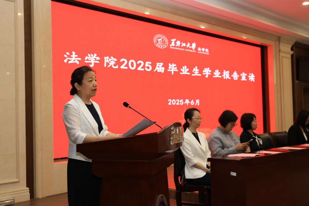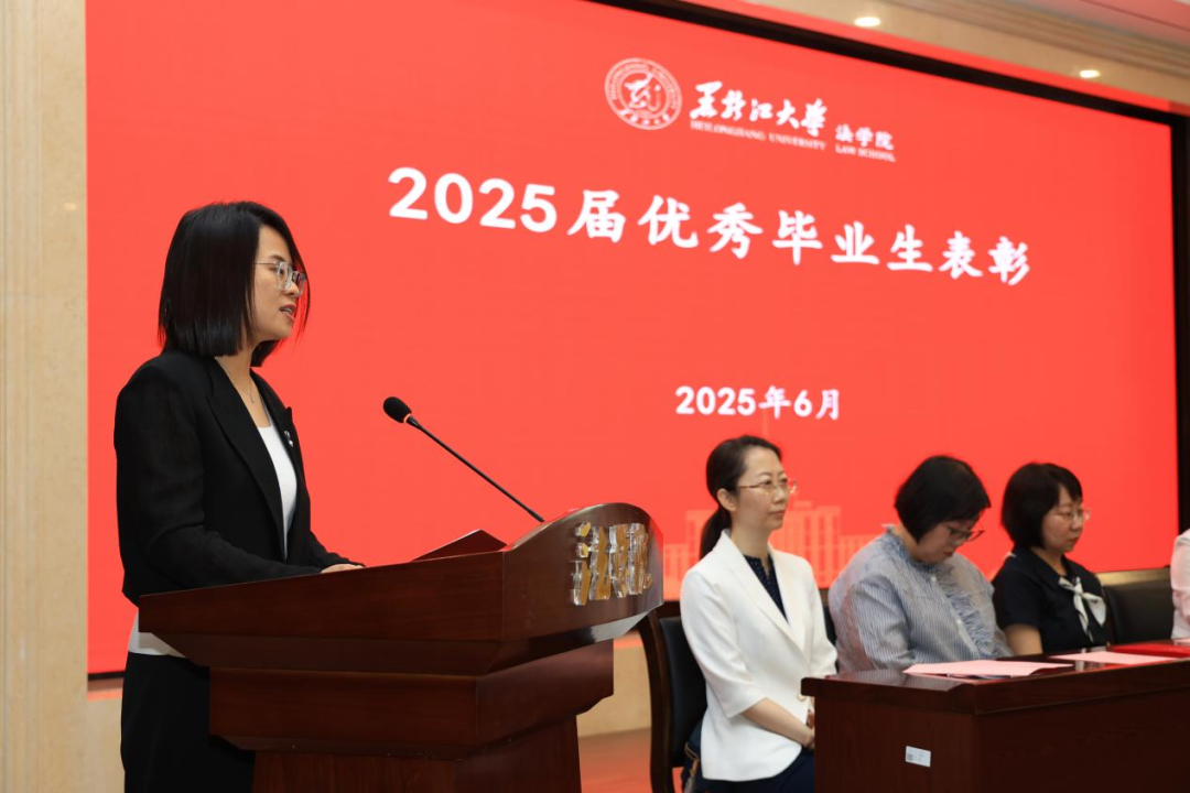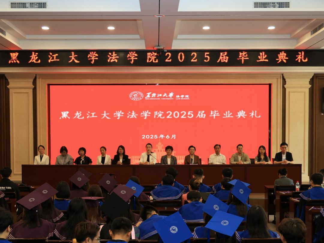 院长哈书菊在毕业典礼上深情寄语,向圆满完成学业的毕业生们表达祝贺、感谢、期许、祝福。她祝贺毕业生们完成学业,并向全体毕业生对学院工作的鼎力支持表达诚挚感谢。她期许同学们在未来职业生涯中始终秉持公平正义的信念,恪守契约精神的职业准则,同时深情祝愿诸位学子前程似锦,做一个优秀的有情有义的黑大法律人。