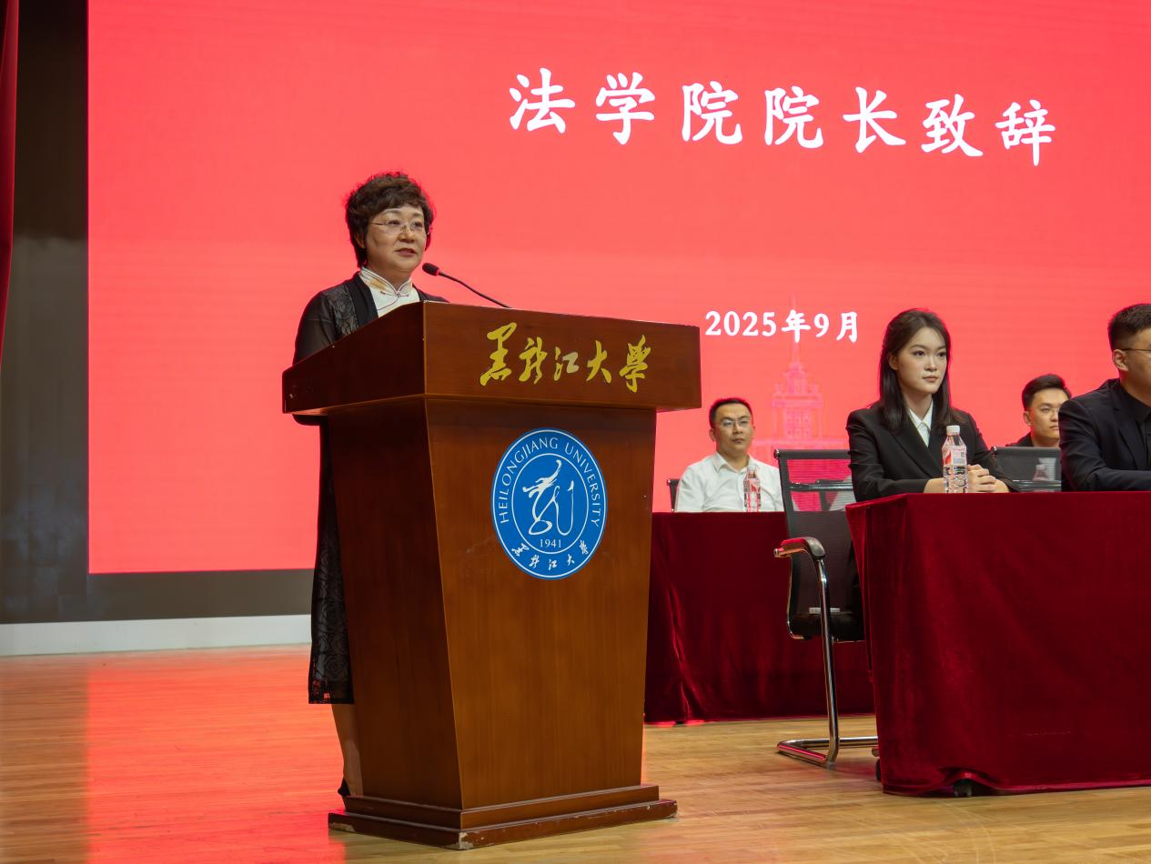 院长哈书菊教授在开学典礼上发表讲话。她回顾了学院深厚的办学传统与卓越成就,勉励新生珍惜时光、奋发有为。她向同学们提出三点期许:一要夯实专业根基,系统建构法学知识体系,培养思辨能力与服务社会的使命感;二要立大志、勇作为,将个人理想融入法治中国建设的时代浪潮,以信念为舵、学识为帆,努力成长为法治栋梁;三要胸怀家国,恪守责任,将爱国情怀与法治信仰相结合,以专业能力守护公平正义,在民族复兴的伟大进程中绽放青春光芒。最后,她祝愿新生在黑大亚洲色情