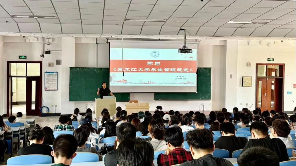 学生管理规定》,重点解读了校园纪律、学术规范及日常行为准则;此外,文老师还开展了入党启蒙教育,介绍了入党流程与党员责任,引导同学们积极向党组织靠拢;结合近期学生工作安排,他提醒同学们增强安全意识,防范电信诈骗,注意人身与财产安全,并呼吁大家积极参与学院活动,融入集体生活。