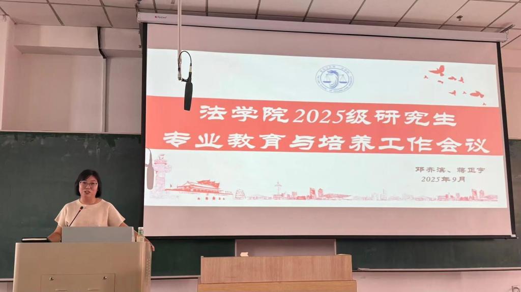 党委副书记董捷、法律史学科带头人邓齐滨教授、研究生秘书蒋正宇老师,2025级研究生辅导员文浩然老师及全体2025级研究生参会。会议由辅导员文浩然主持。