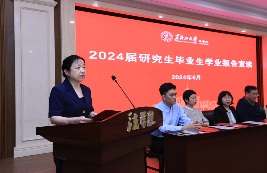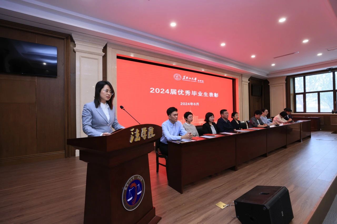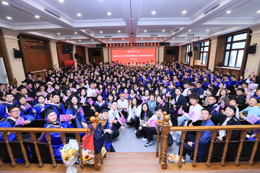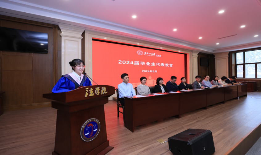 院长哈书菊在毕业典礼上致辞。她表达了对2024届毕业生的祝贺,期望毕业生们做一个有情有义的法律人,做一个讲道理守道义的法律人,脚踏实地,行稳致远,并嘱托法学学子在国家的法治道路上,要坚持以事实为根据,以法律为准绳,铭记“法经天下,律振中华,凛然正气,厚积薄发”的院训,坚守“博学慎思、求真务实、笃信法律、仁爱良善”的学院精神,早日成为栋梁之才。