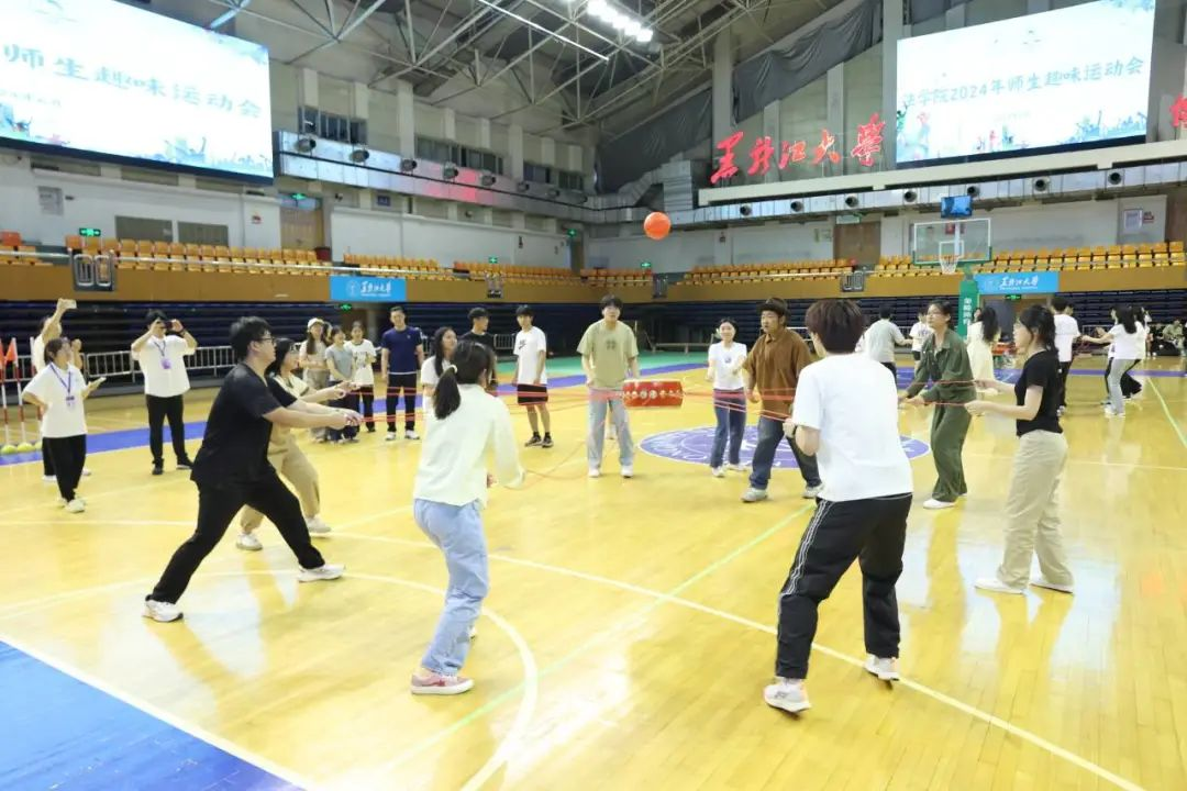 体育馆举办2024年师生趣味运动会,学院教师、本科生以及研究生800余人参加本次运动会。