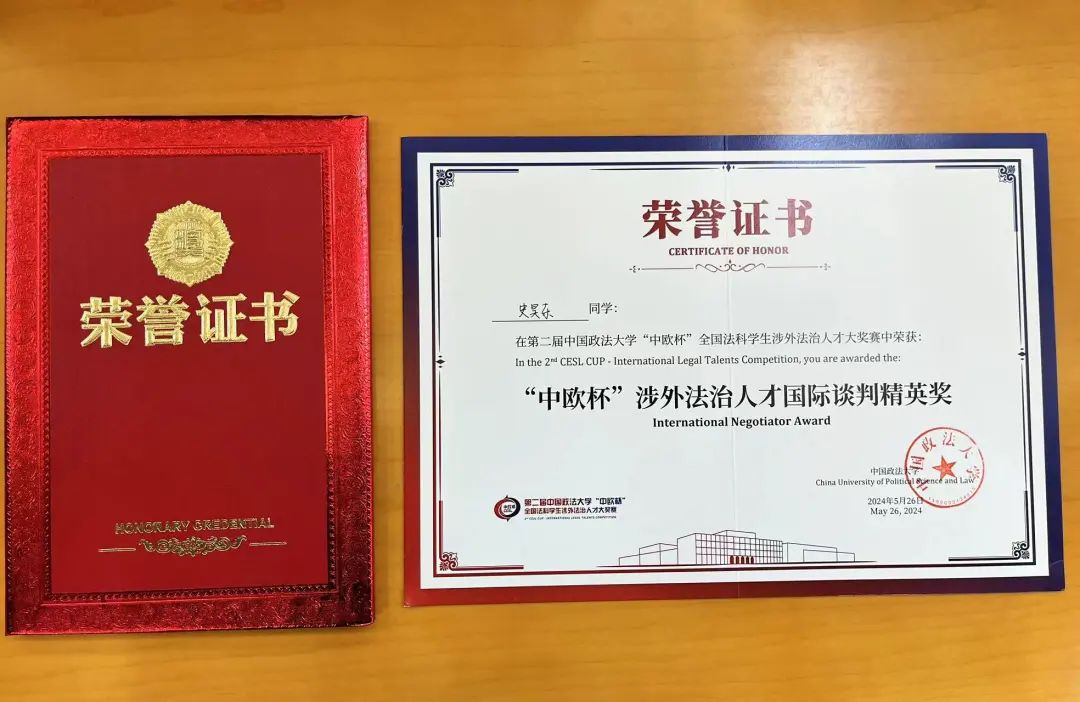 在竞争激烈的复赛环节,我校学生史昊东表现优异,以良好的外语基础、专业素养和综合能力,充分展现了涉外法治人才风采。经评委评审,史昊东与来自北京大学,上海交通大学 ,厦门大学,南开大学等高校参赛选手一同获得涉外人才国际谈判精英奖,取得了出色成绩。