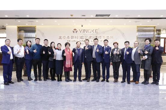 与北京市盈科(哈尔滨)律师事务所在中实大厦10层多功能会议室举办党建联建暨教学实践基地揭牌仪式,院党委书记胡东、院长哈书菊,党委副书记、副院长魏双、副院长丁玉翠、团委书记王业超、盈科哈尔滨党支部书记赵明、执行主任徐强、监事会主任潘立波及相关人员共同出席了此次签约揭牌仪式,仪式由盈科哈尔滨执行主任助理苏瑞雪主持。