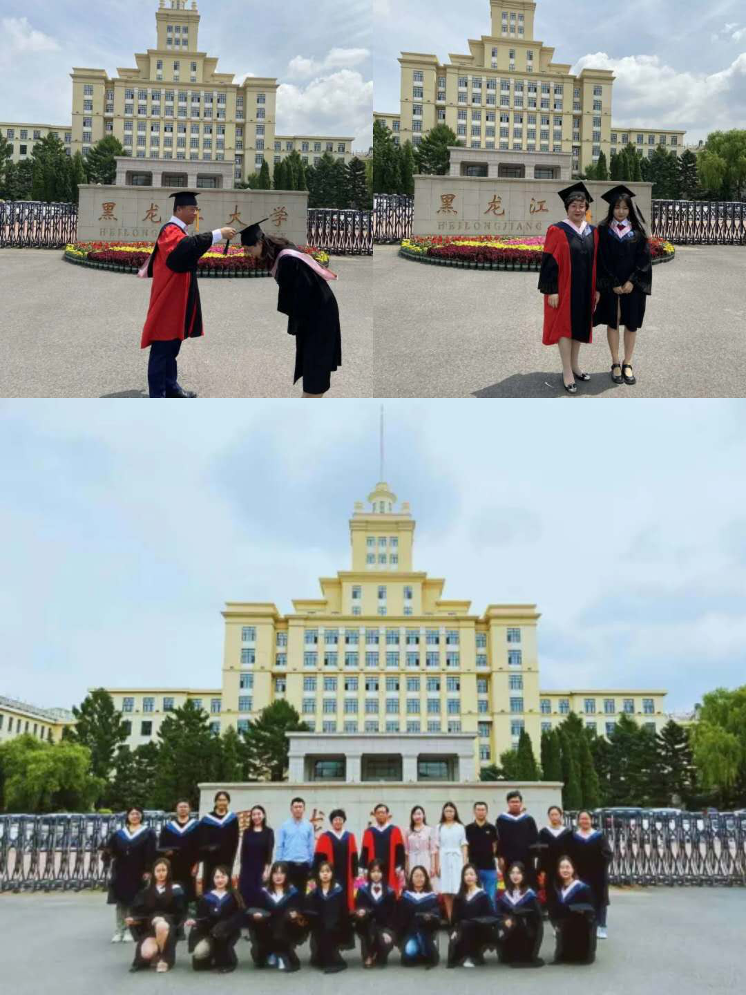 典礼接近尾声,胡东书记、哈书菊院长与在哈毕业生代表一同进行了特别的学位授予仪式。