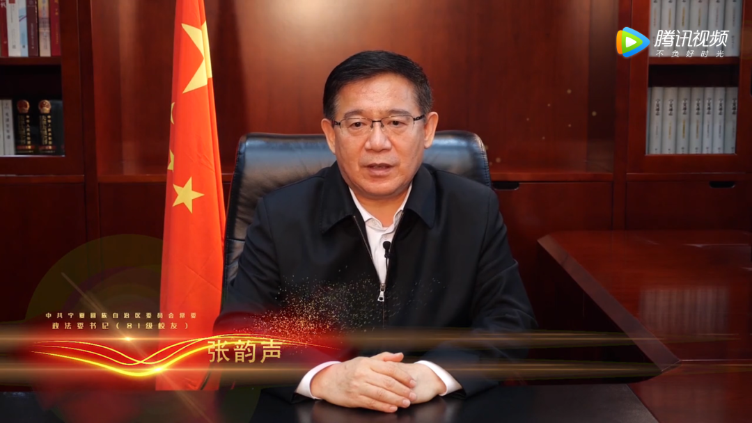接着,我校81级优秀校友中共宁夏回族自治区委员会常委政法委书记张韵声在云端寄语2020届全体毕业生,叮嘱全体毕业生要秉持本真,善良做人,脚踏实地,淡泊名利,拼搏进取,为中国的法治建设贡献自己的力量。