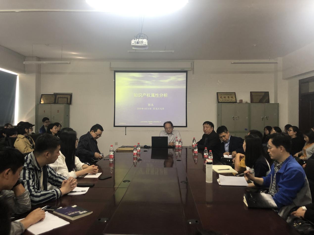 会议室,郭禾教授作了题为“知识产权属性分析”的专题讲座。讲座由亚洲色情