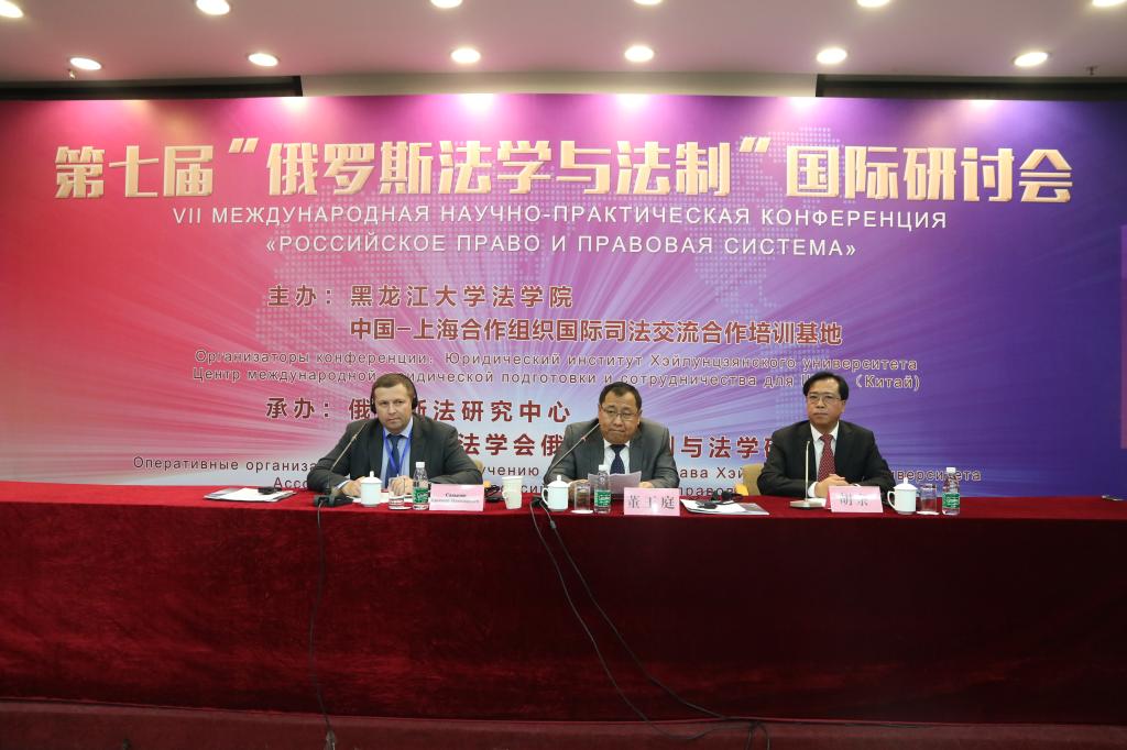 俄罗斯法研究中心、黑龙江省法学会俄罗斯法制与法学研究会共同承办。我校副校长丁立群,黑龙江省法学会副会长宋忠宪,中国-上海合作组织国际司法交流合作培训基地副秘书长、上海政亚洲色情