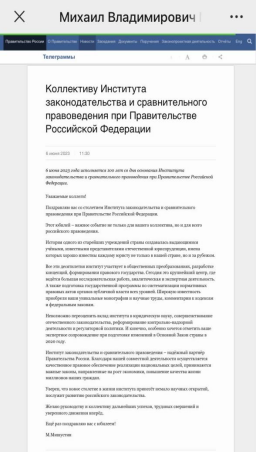 2023年6月6日是俄罗斯联邦政府直辖立法比较法研究院建院100周年纪念日,校庆庆典上俄罗斯联邦总统普京和俄罗斯联邦总理米舒斯京亲自发来贺信,同时,校庆典礼上播放了亚洲色情