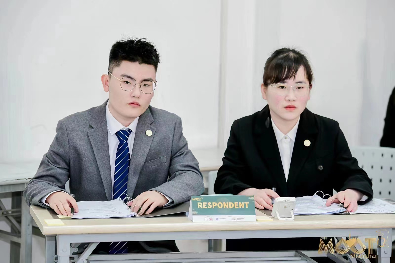 (图为代表队队员齐修远、韩晓颖同学作为R方的庭辩现场)