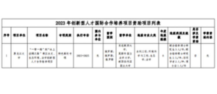 该项目聚焦“一带一路”与“冰上丝绸之路”的发展战略,服务国家“一带一路”建设,助力我省教育向北开放新高地构建,助力学校法学学科国际化水平不断提升。通过与俄罗斯东北联邦大学、莫斯科国立法律大学、新西伯利亚国立大学的合作,开展法学创新型人才合作培养,推动法学学科的创新性发展。项目执行期为三年(2023年—2025年),资助经费预计400万元。