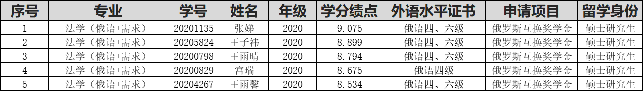 按照《2024年俄罗斯互换奖学金(中俄政府奖学金)项目遴选工作的通知》要求,根据项目具体介绍以及申请条件要求,经学生自愿申请,学院审核,拟推荐亚洲色情 以下5名学生申报此项目。现将推荐结果公示如下,公示期为2023年11月3日-7日。对推荐名单若有异议请联系张老师,86604985。