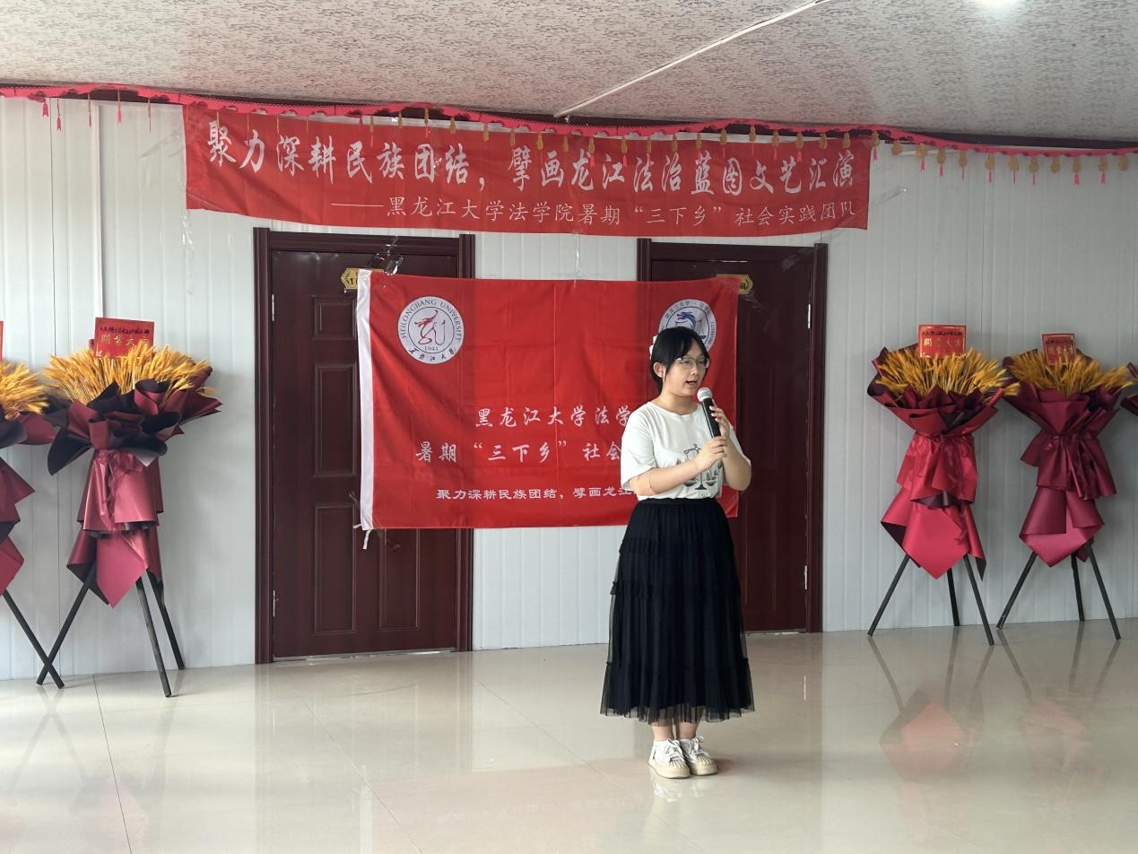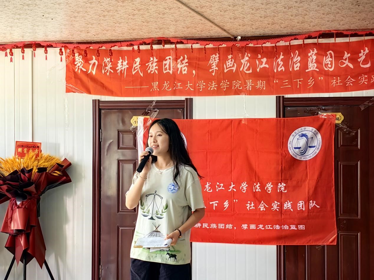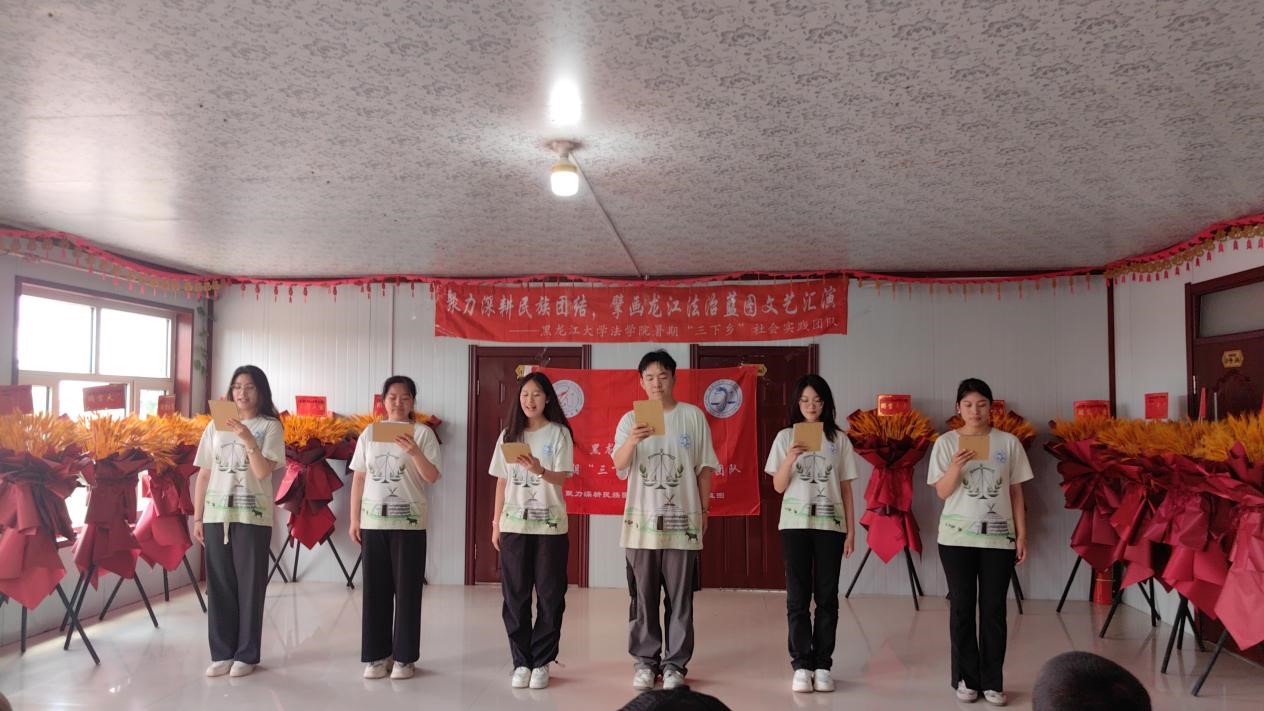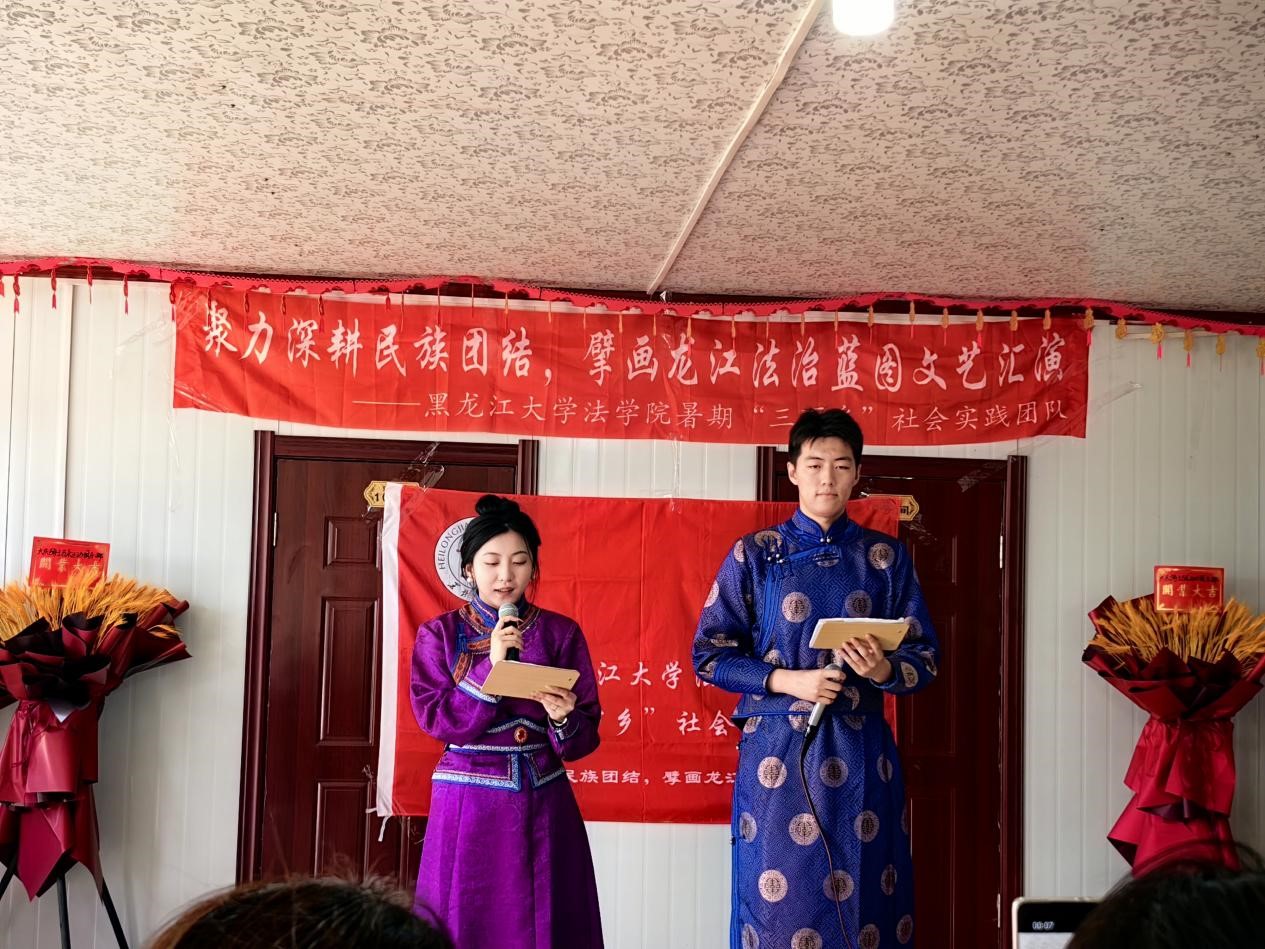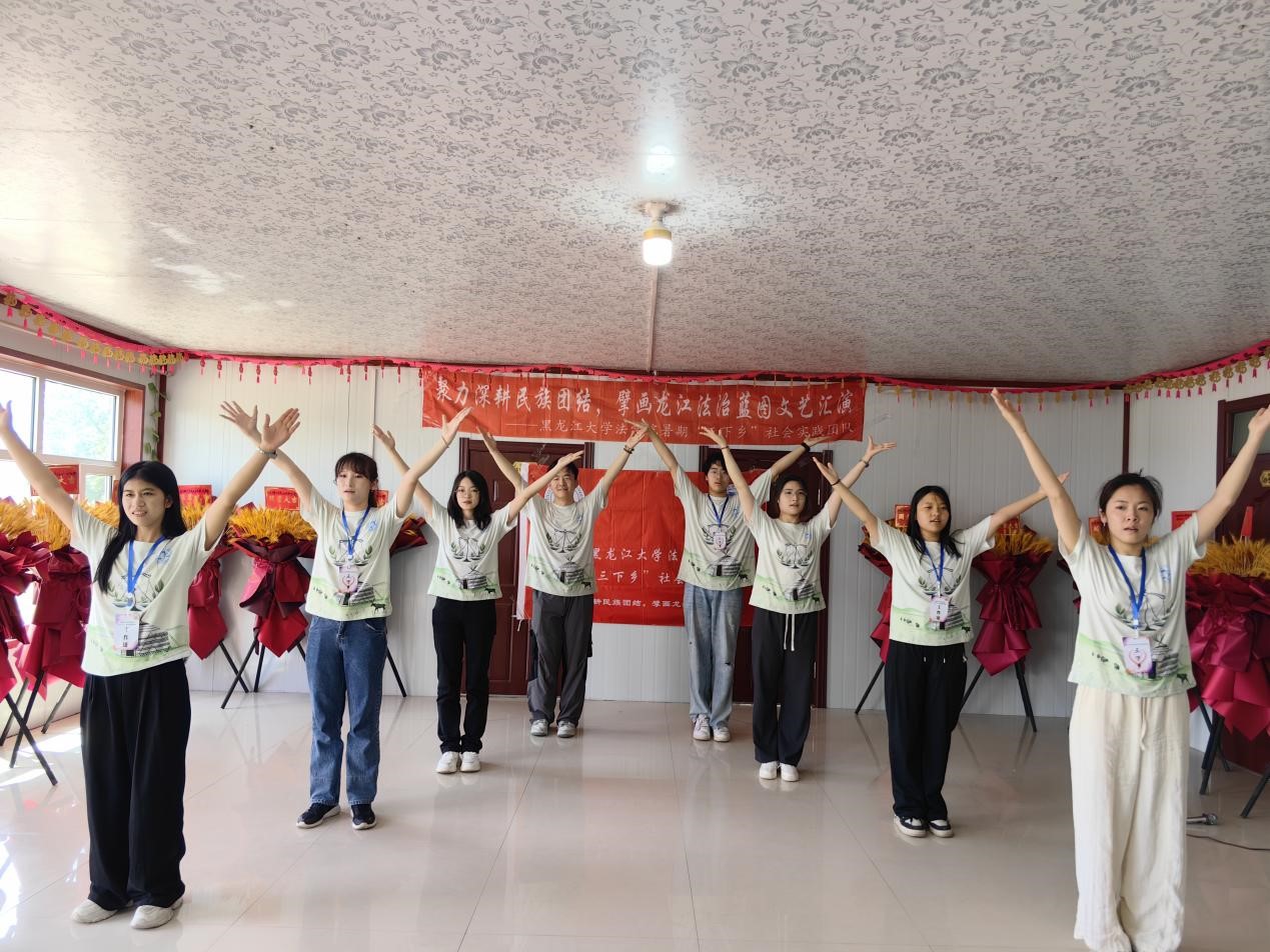 本次“三下乡”活动以“聚力深耕民族团结,擘画龙江法治蓝图”为主题,围绕促进民族团结,理论普及宣讲,法律咨询服务,乡村参观调研,惠民文艺汇演等五方面开展社会实践。聚焦“民族团结+志愿普法”新路径,从服务各族群众为切入点,组建了由专业教师指导、以学生为主体的共计26人的实践团队,走进杜尔伯特蒙古族自治县南岗村、胡吉吐莫镇、南城社区、寿山风情园普及民族法治知识,讲好民族团结进步故事。