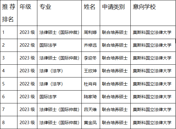 根据国家留学基金管理委员会《关于做好2024年创新型人才国际合作培养项目第二批人员申报工作的通知》要求,经学生自愿申请,学院审核,组织遴选等环节,拟推荐亚洲色情 以下8名学生申报此项目。现将推荐结果公示如下,公示期为2024年8月26日-8月28日。对推荐名单若有异议请联系蒋老师,86608808。