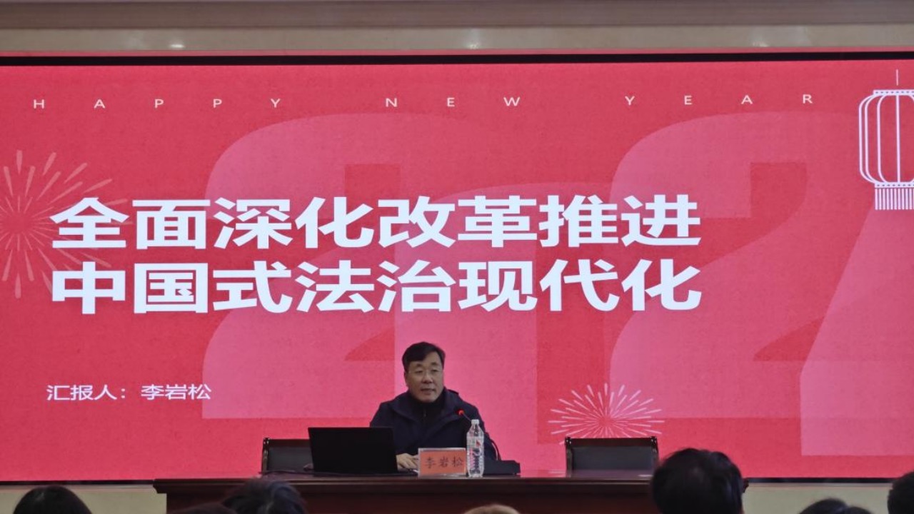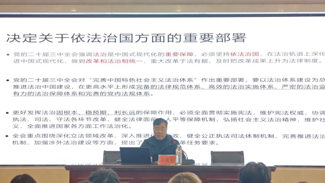 李岩松以《全面深化改革,推进中国式法治现代化》为题,围绕深入学习领会习近平总书记在党的二十届三中全会上的重要讲话精神、《中共中央关于进一步全面深化改革、推进中国式现代化的决定》对党的二十届三中全会精神进行了全面、深入的阐释解读。