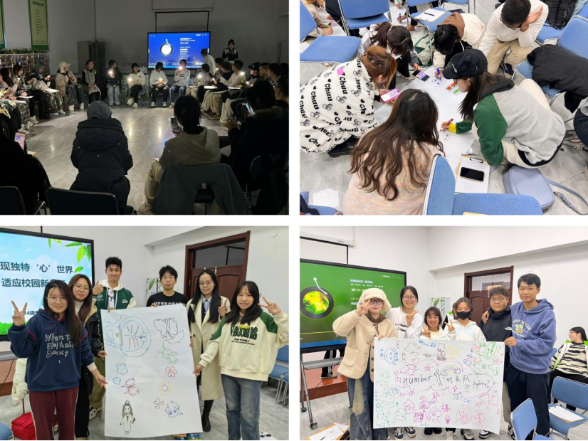 在“默契排队”“自我介绍”“大学生活中的五个最”“无声作画”等环节中,同学们在线条与色彩的交汇融合中体验乐趣,增进感情,在畅想未来中,聆听自己内心的真实声音,思考未来的努力方向,增强了同学们的团体协作意识与集体凝聚力。最后,师生们合唱“夜空中最亮的星”,在美妙的歌声中圆满完成了此次活动。