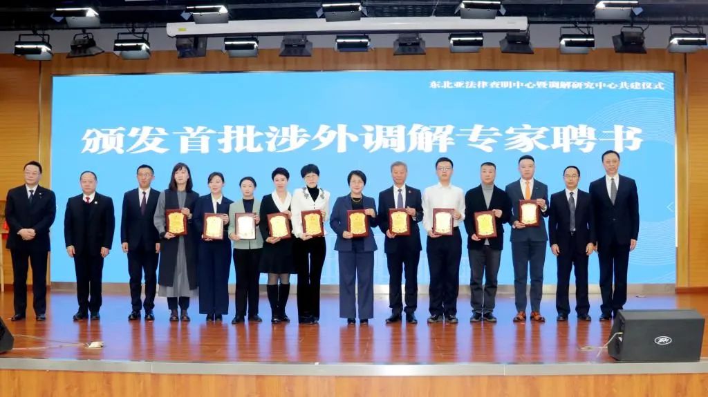 仪式上,与会领导还为首批47名涉外调解员代表颁发了聘书。