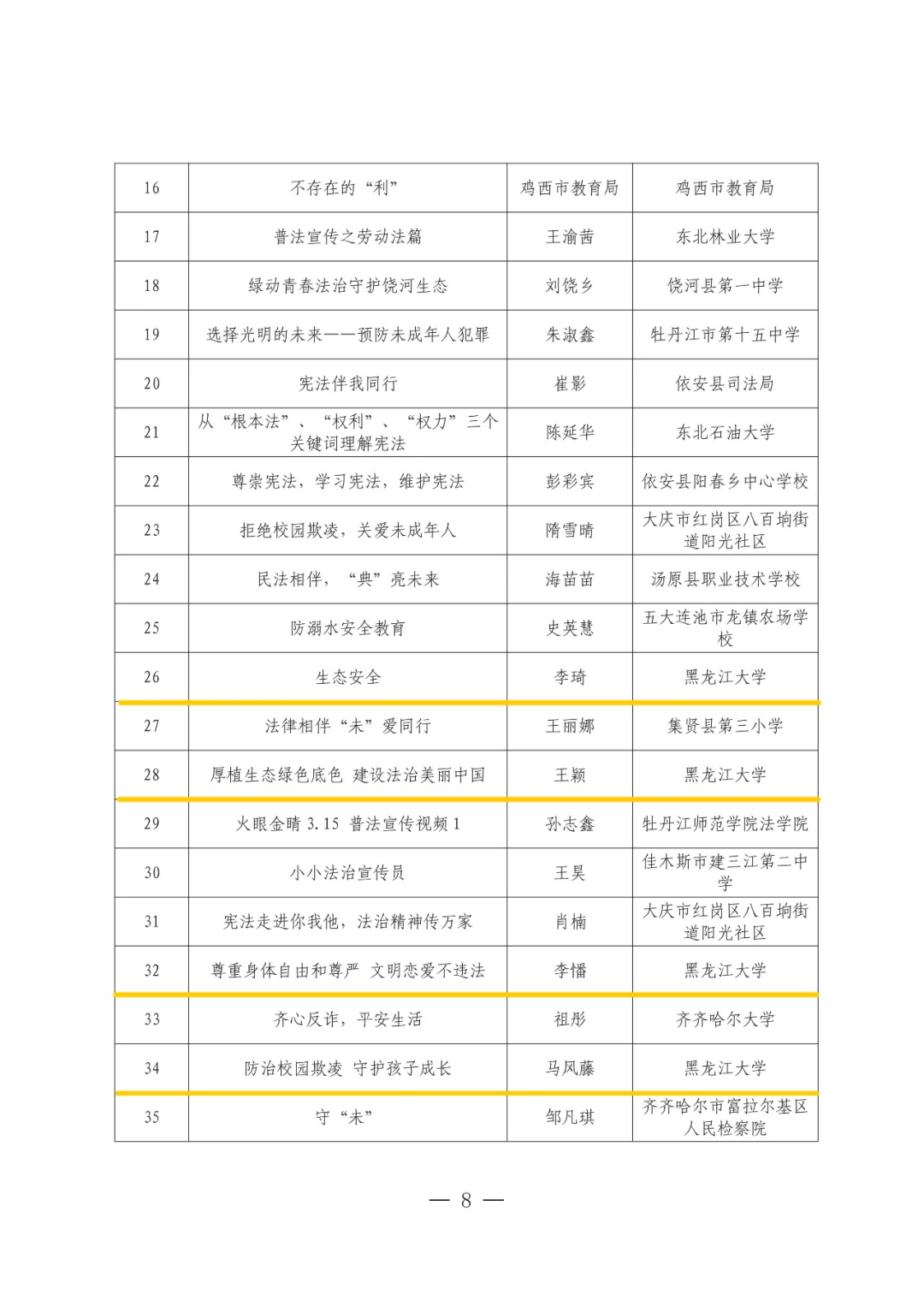 共有4个课例入选优秀法治精品课课例,10个视频入选优秀法治宣传视频,获奖比例位列全省第一名。