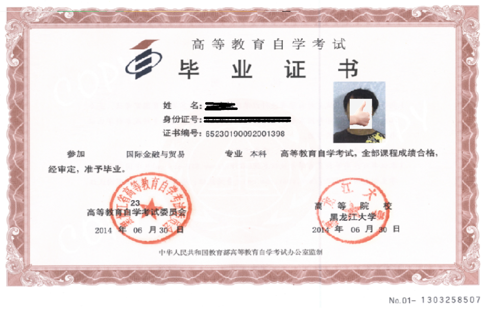 共同验印的自考本科毕业证书,国家承认学历,学信网可查询,毕业文凭得到世界60多个国家的认可。