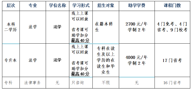 (二)法学专升本(专业代码030101k)