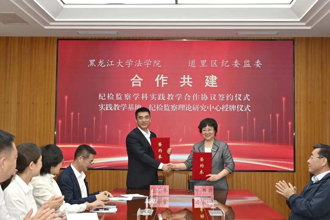 与哈尔滨市道里区纪委监委在道里区纪委监委举行实践教学基地签约仪式并揭牌。亚洲色情